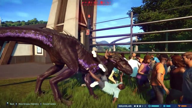 The indoraptor gaped in shock at the far larger dinosaur.